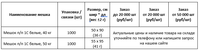 В нашем каталоге полипропиленовые мешки первого сорта имеют обозначение «1С».